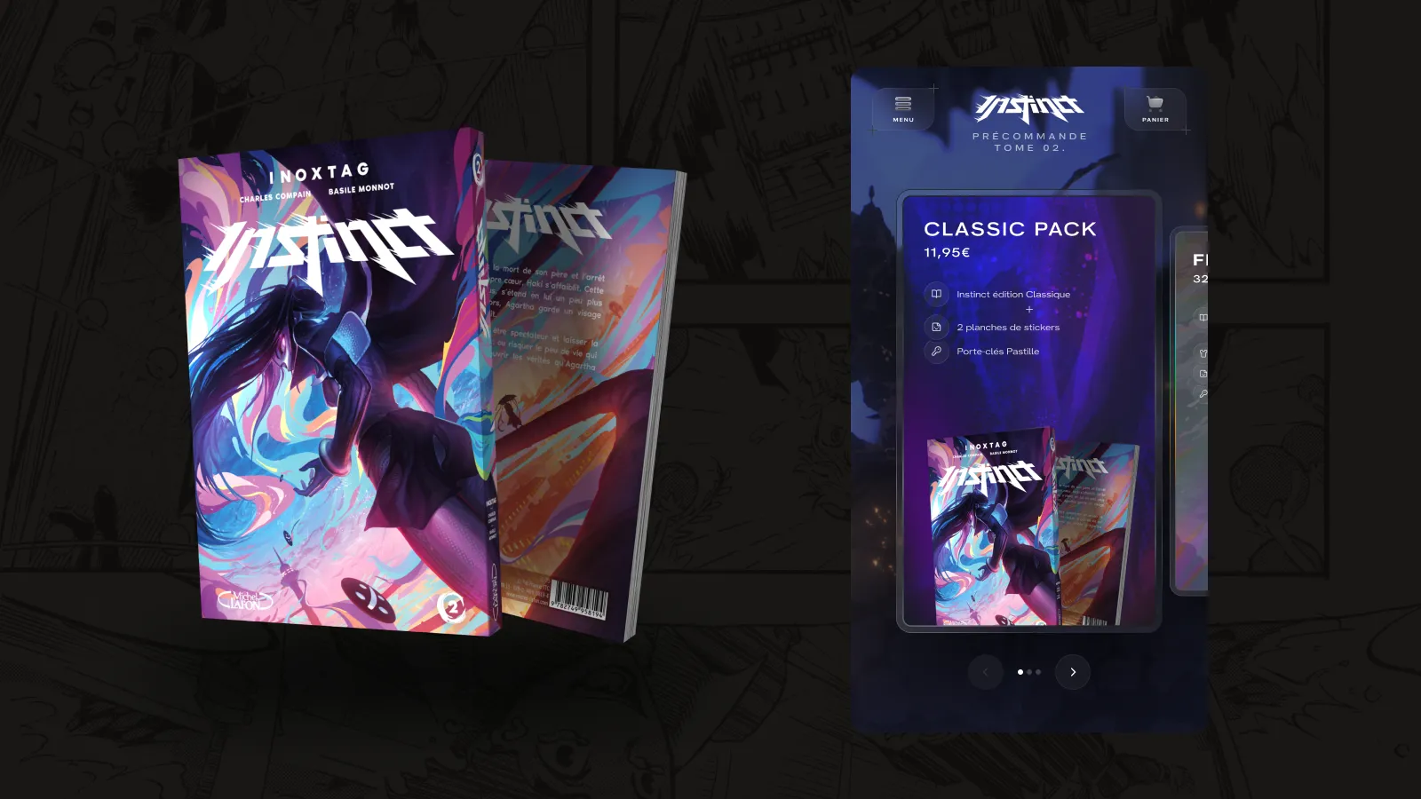 L’équipe créa, menée par Gaetan Plait, a construit une DA fidèle à l’univers du manga : brutale, dynamique, immersive. Pour la servir au mieux, nous sommes partis de la base du site du Tome 1, que nous avons fait évoluer avec des développements spécifiques.